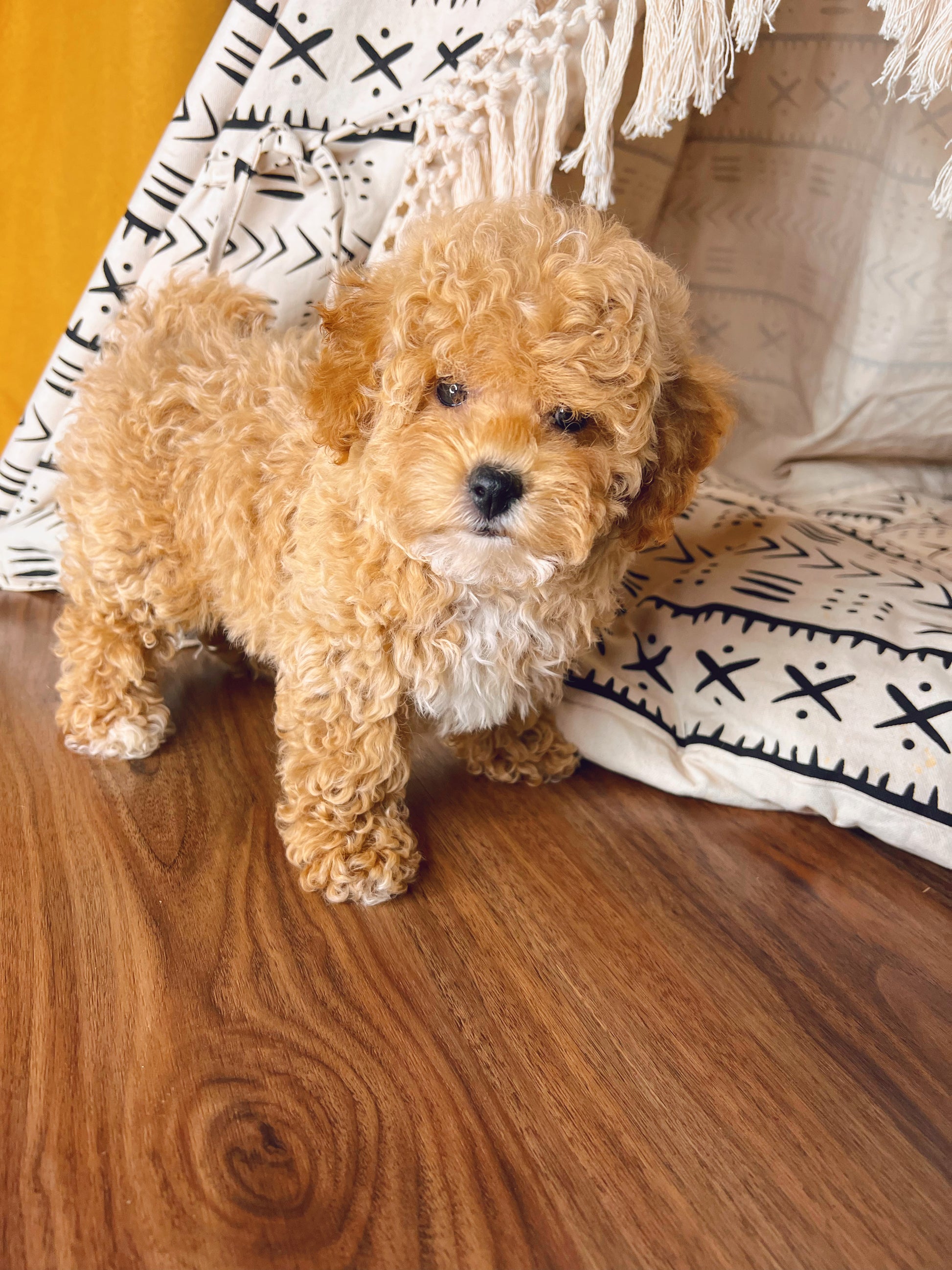 Daisy is a very playful puppy who loves people. She has a beautiful apricot coat and with gorgeous white markings. Daisy will join her new family current on vaccinations and dewormer. She has received lots of love and attention which has helped build great confidence. Daisy is expected to weigh approximately ten pounds full grown.