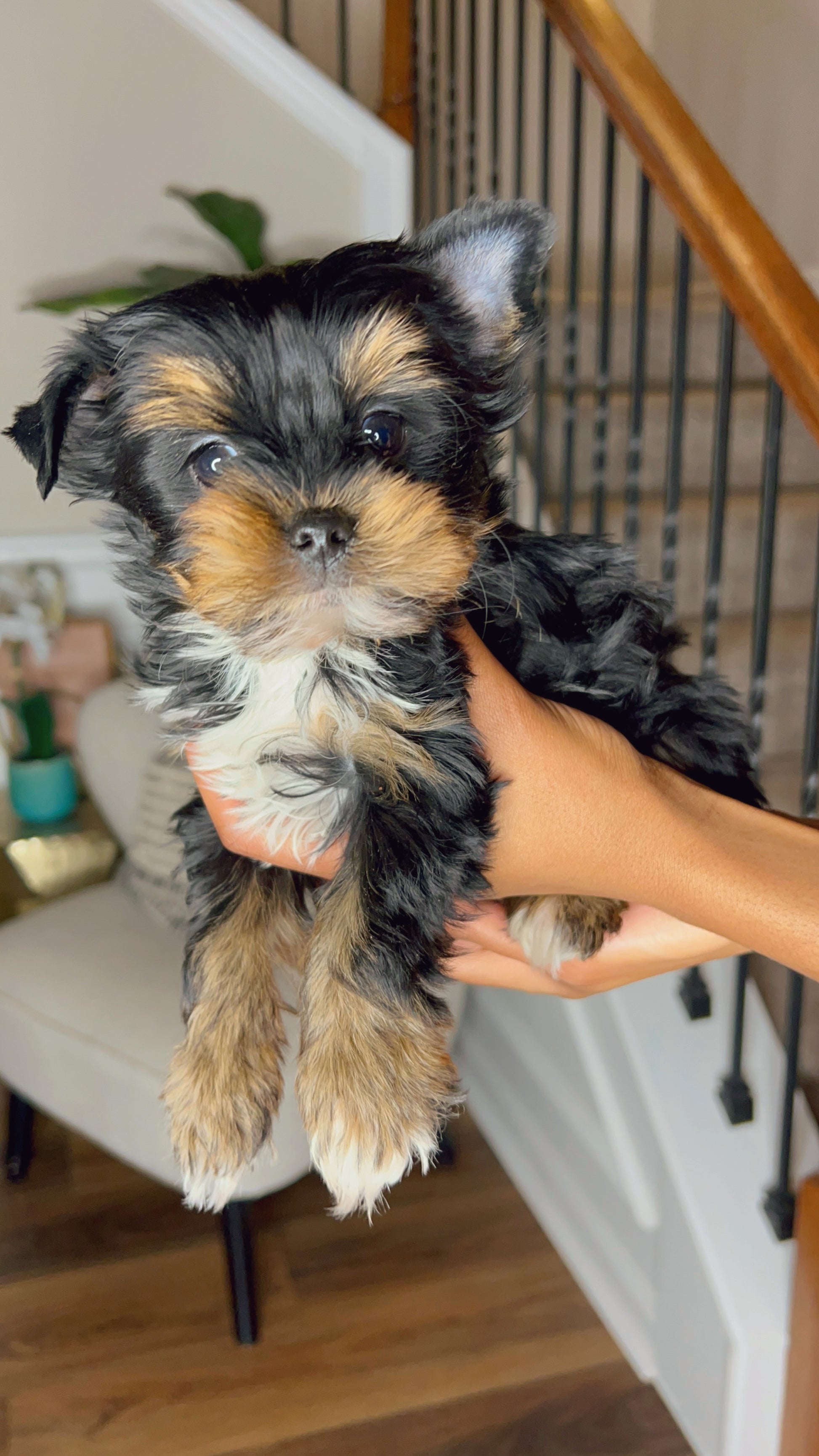 Happy is a very lovable purebred Yorkie puppy, who loves cuddles and playtime. He has a beautiful tricolor coat and a cute teddy bear face. Happy was born 11/29/24, he is expected to be about six to ten pounds full grown. Happy will join his new family up to date on vaccines and deworming.