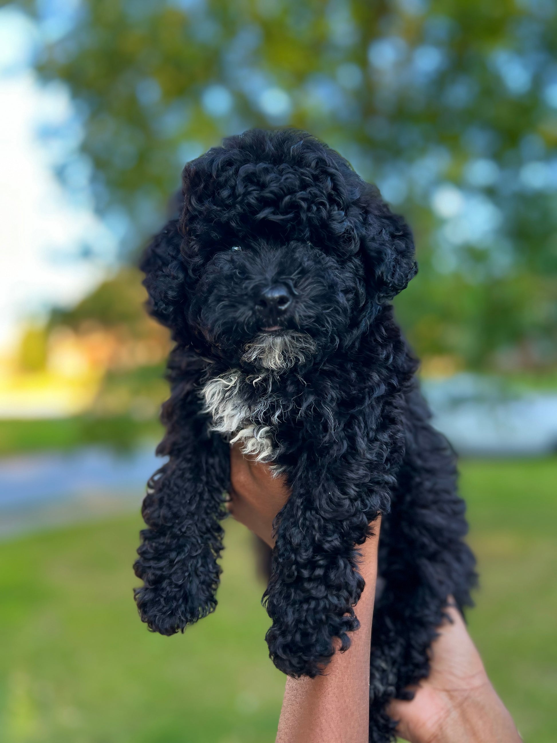 This Havanese/ Miniature Poodle is cute as a button and sweet as can be. He is confident, cuddly and playful. His allergy friendly coat has the most beautiful curls. Havi will make an excellent family pet, and he gets along great with other dogs. Havi is expected to be just under 20lbs when he is full grown. Contact us to schedule a FaceTime with Havi!