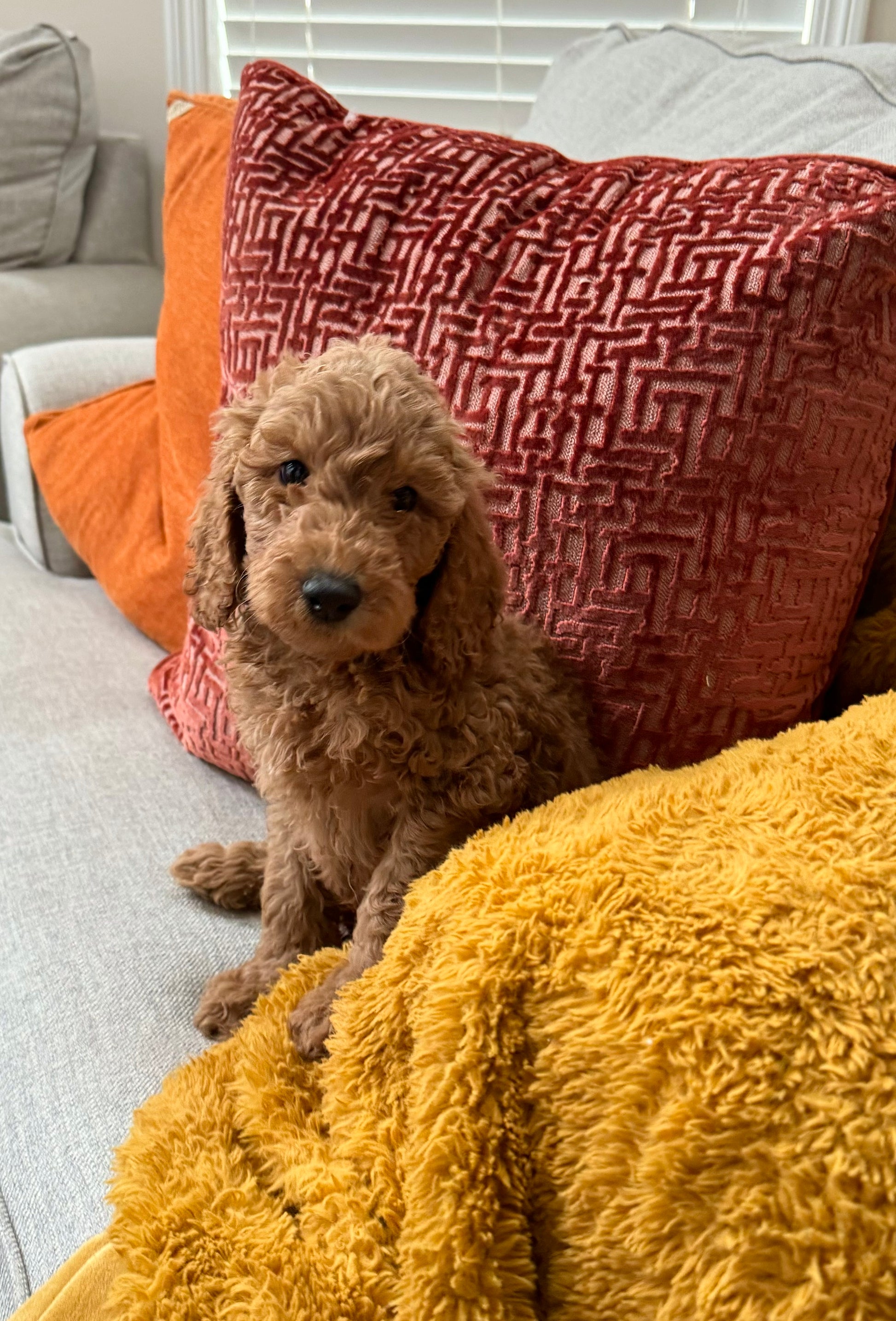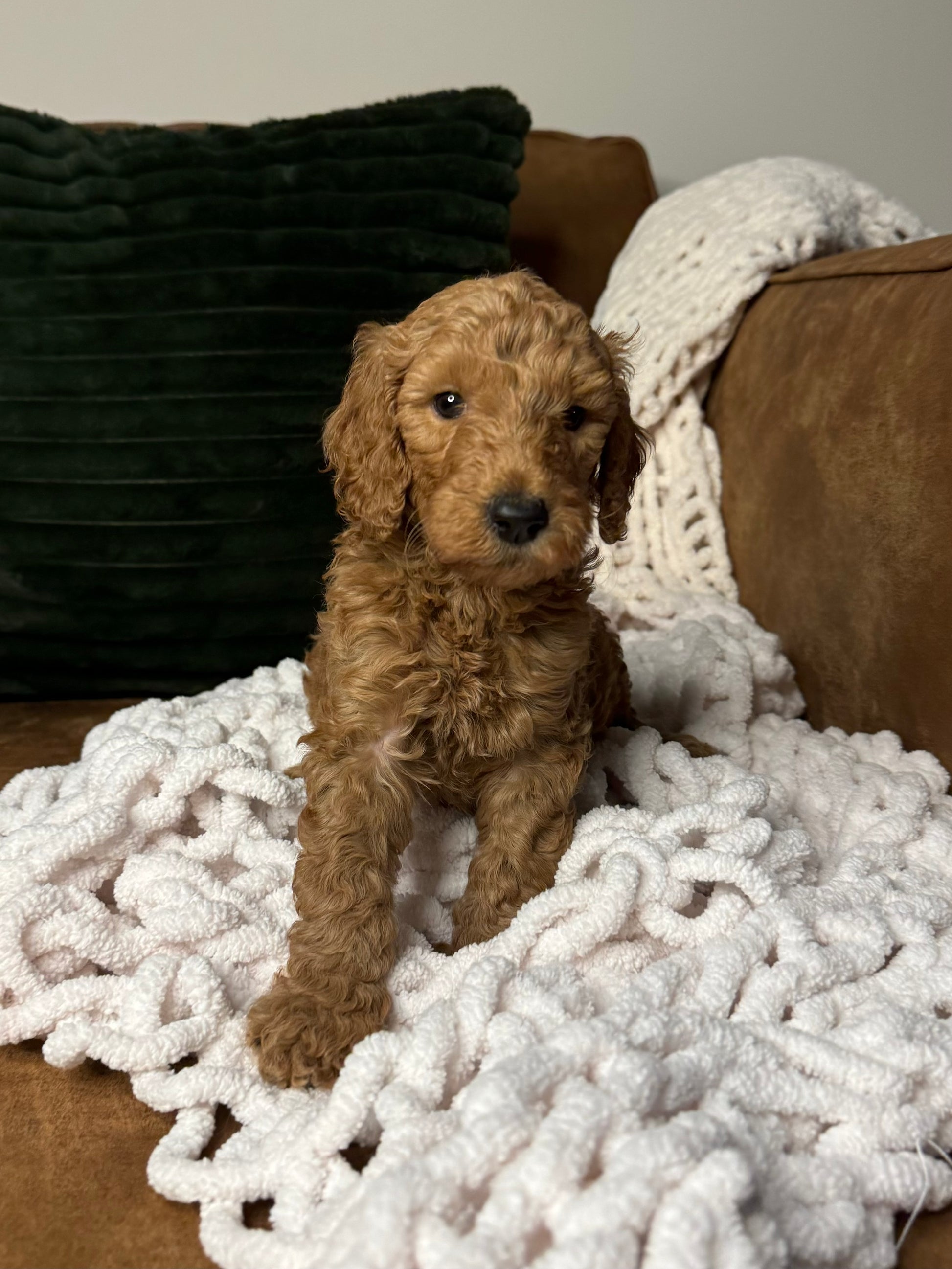 Leo is a standard F1bb goldendoodle. Born 8/9/24. he has a gorgeous red coat. He is expected to be 35-45 pounds full grown. He is socialized and has spent the first few months of his life in a very stimulating and loving environment. He is being crate and pad trained and ready to be your new best friend.