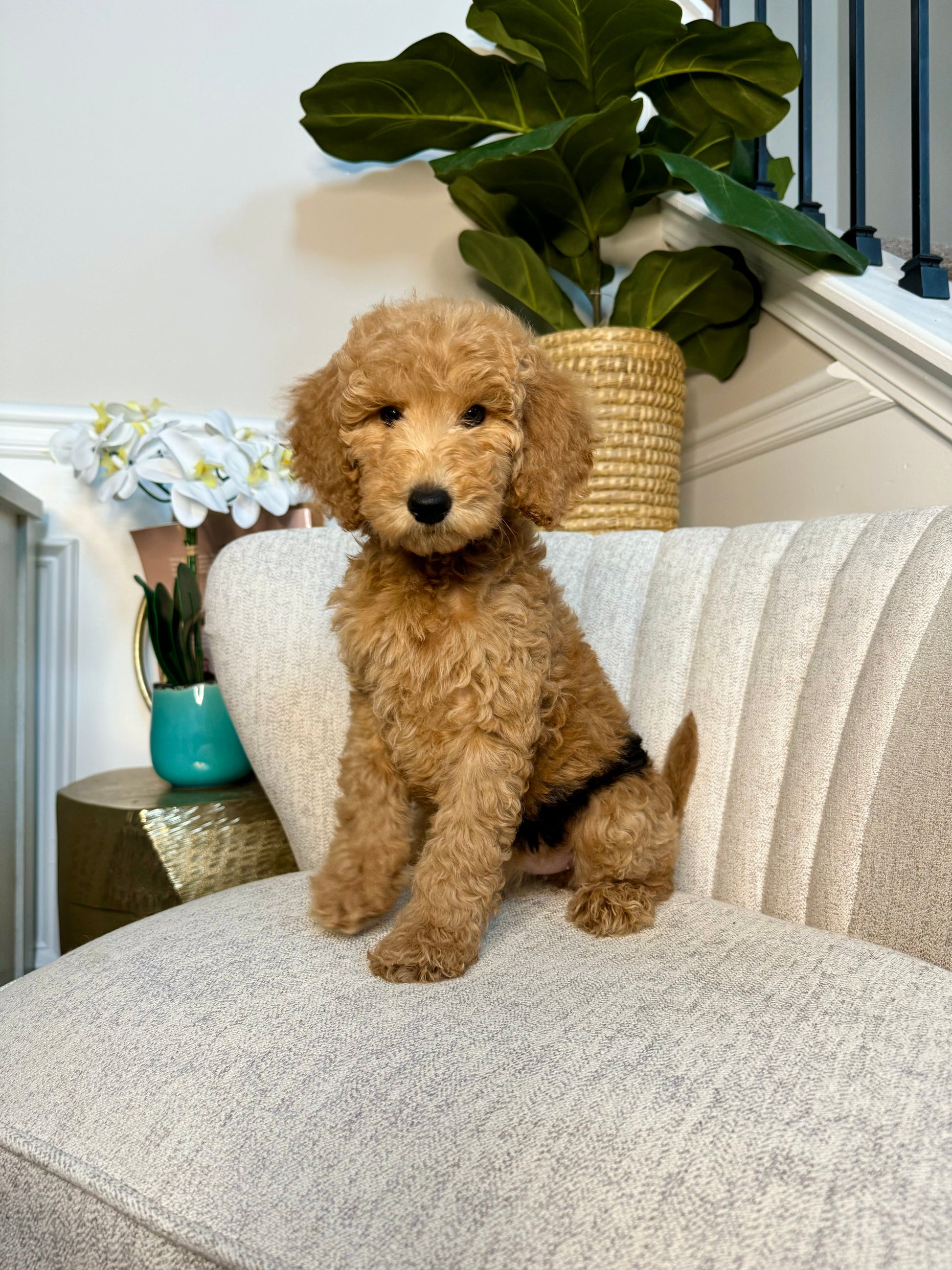 Moon is a standard F1bb goldendoodle. Born 8/9/24. She has a gorgeous red coat with a unique black marking on her back. She is expected to be 30-40 pounds full grown. She has spent the first few months of her life in a very stimulating and loving environment. She is being crate and pad trained and ready to be your new best friend.