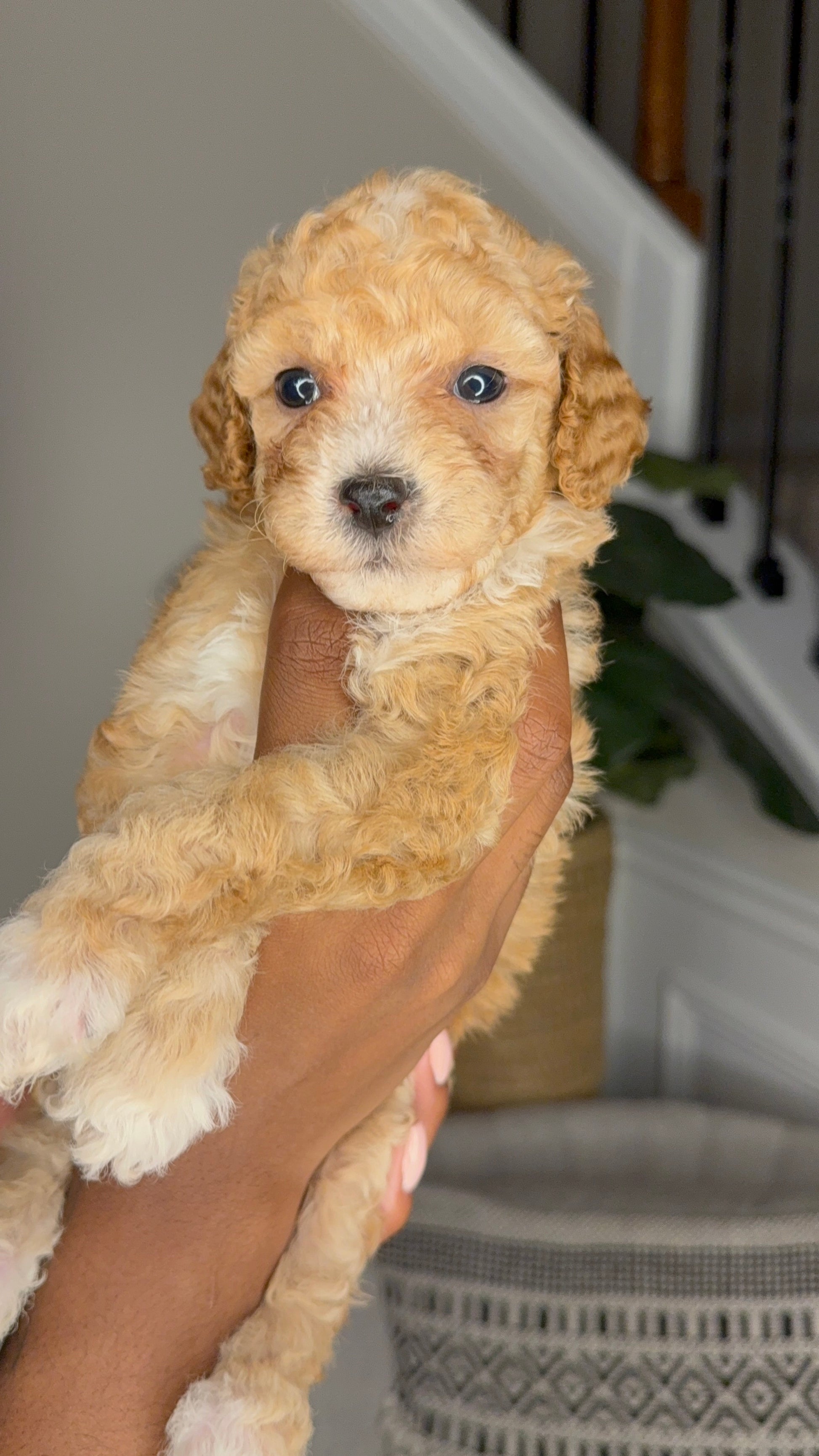 Say hello to Nina, our sweet Cockapoo girl with a beautiful tan coat with white markings! Born on June 28th, Nina is a perfect blend of the affectionate Cocker Spaniel and the intelligent, hypoallergenic Poodle — giving you the best of both worlds.