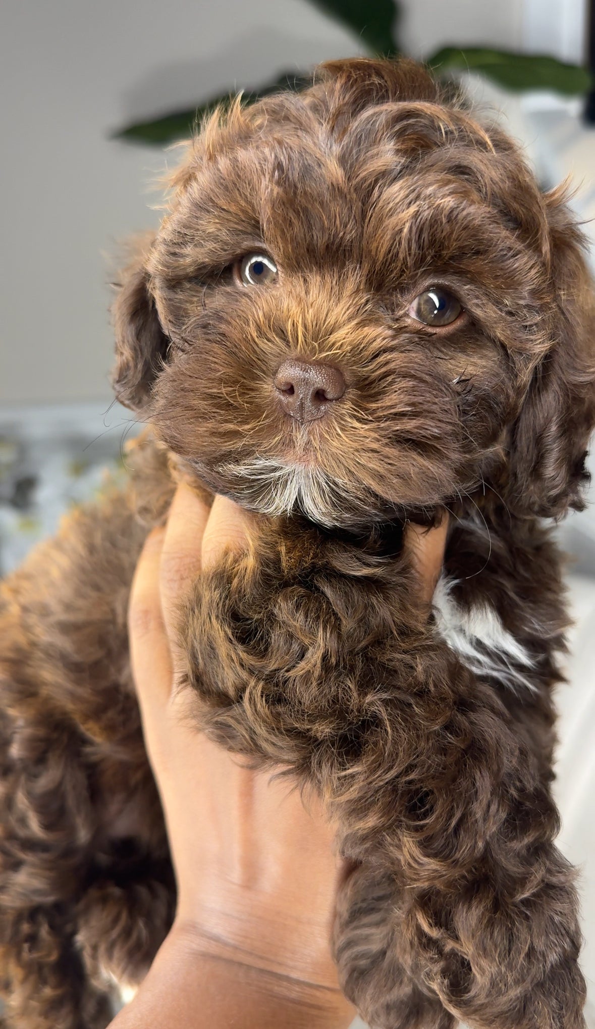 Introducing O’hana, a beautiful chocolate Shihpoo with a warm heart and an irresistibly soft, wavy coat. She’s charting to stay toy-sized, around 10 lbs full grown, making her a perfect little companion for both cozy homes and active lifestyles.