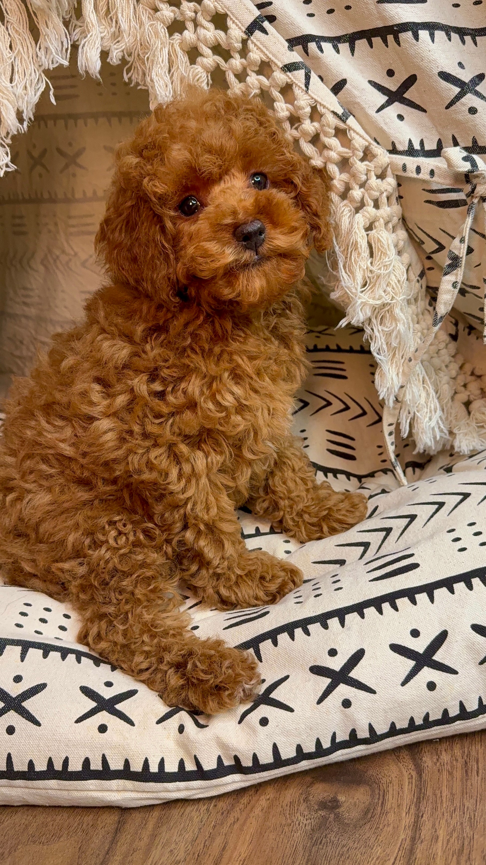 Prepare to be charmed by Petey, a handsome Miniature Poodle boy whose temperament is truly amazing! Petey is the definition of a perfect companion: he is super sweet, deeply affectionate, gentle, loving, and playful. He thrives on human connection and is happiest when he is nestled in your lap or gently playing nearby. He has a wonderful, balanced energy that makes him suitable for quiet cuddles or a fun game of fetch. His manageable size, combined with his loving nature, makes him an ideal addition to a devoted family.