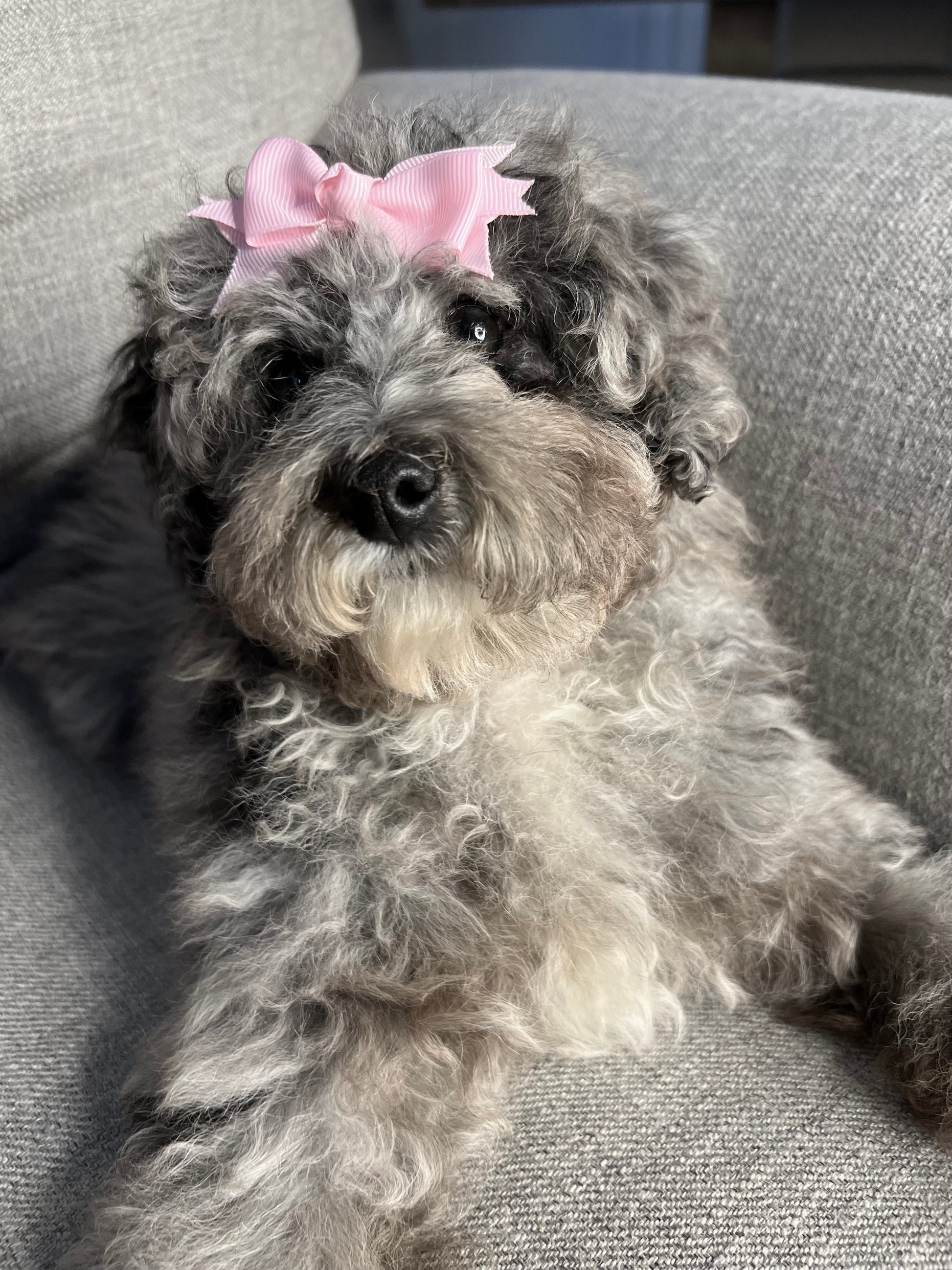 This female Merele Mini Poodle puppy is very playful and sweet. She comes puppy pad trained and up to date on shots and dewormer.