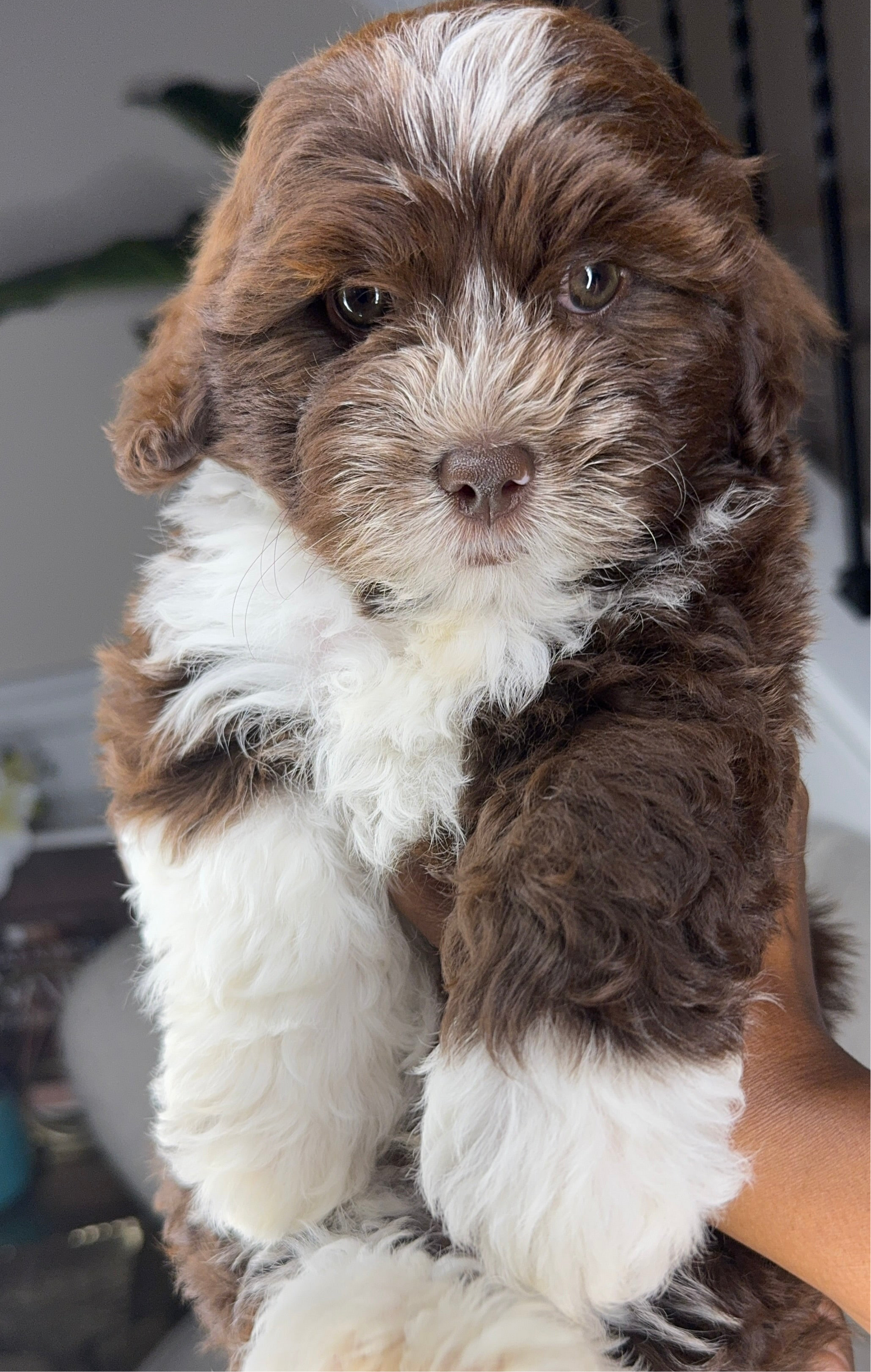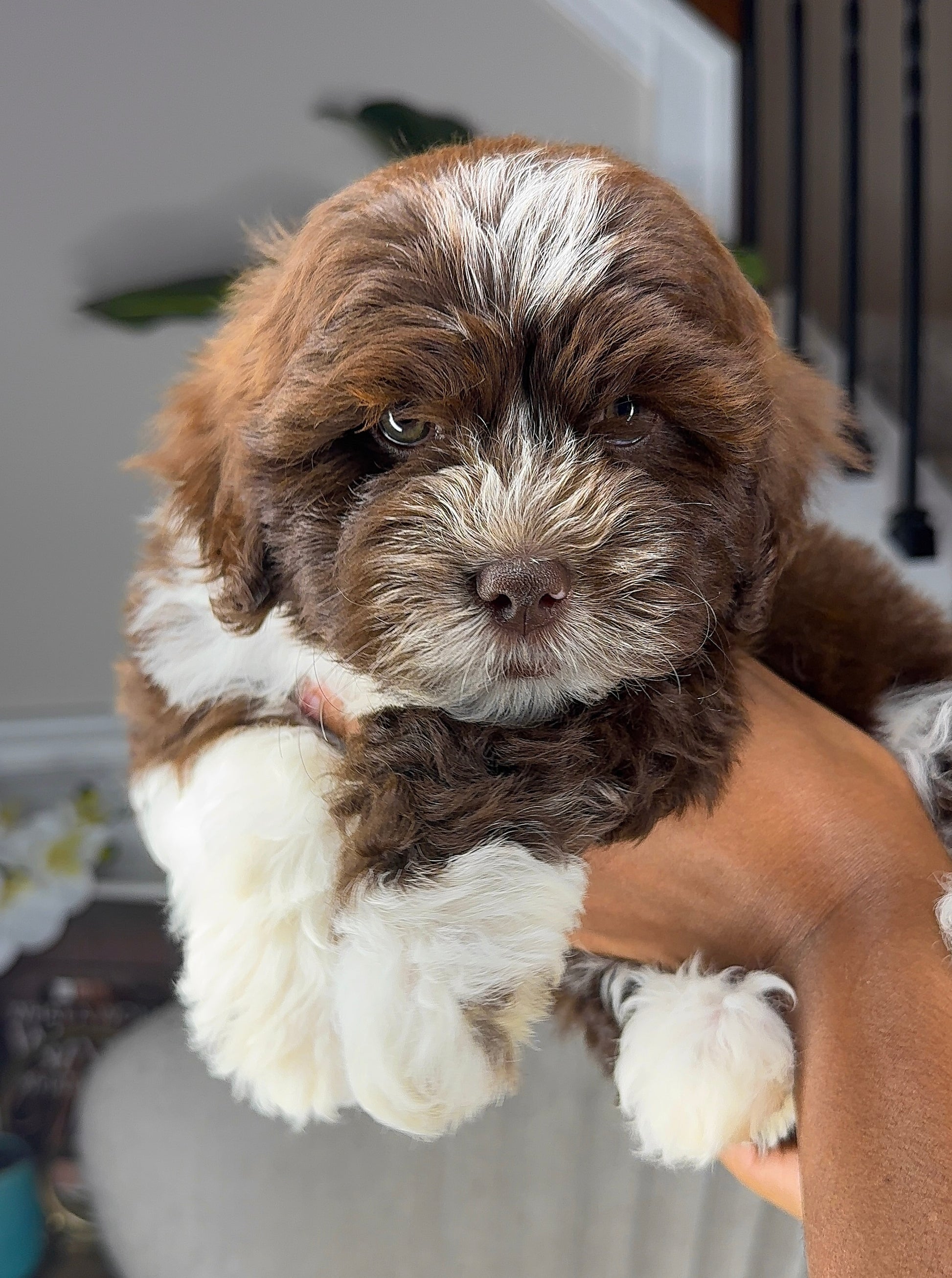 Tobias is a handsome male Shihpoo, born on April 5, 2025. He has a soft brown coat, and gorgeous white markings that make him as unforgettable as he is lovable.