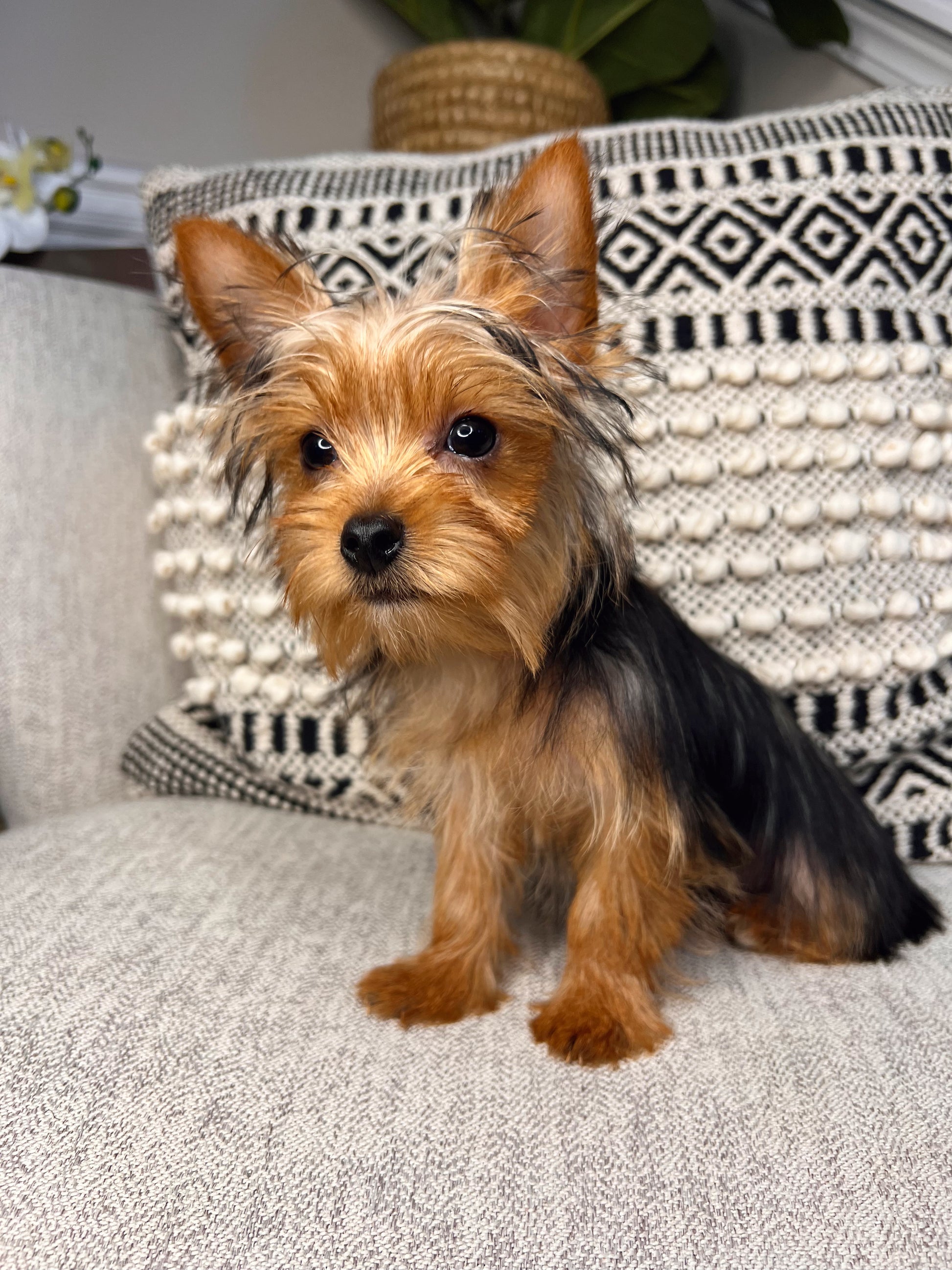 Raised with love and attention, this Yorkshire Terrier has been socialized to be both playful and well-mannered, making him a fantastic companion for families and individuals alike. His small, yet sturdy frame makes him ideal for apartment living or as a delightful travel buddy.