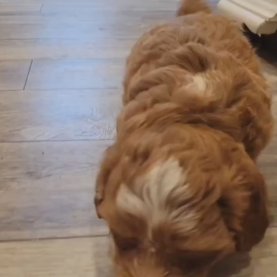 Zane is a stunning and sweet Toy Shih-Poo puppy, ready to steal your heart! With his beautiful red coat and striking white accents/markings, Zane is as gorgeous as he is gentle. He is eagerly waiting to find his forever home!
